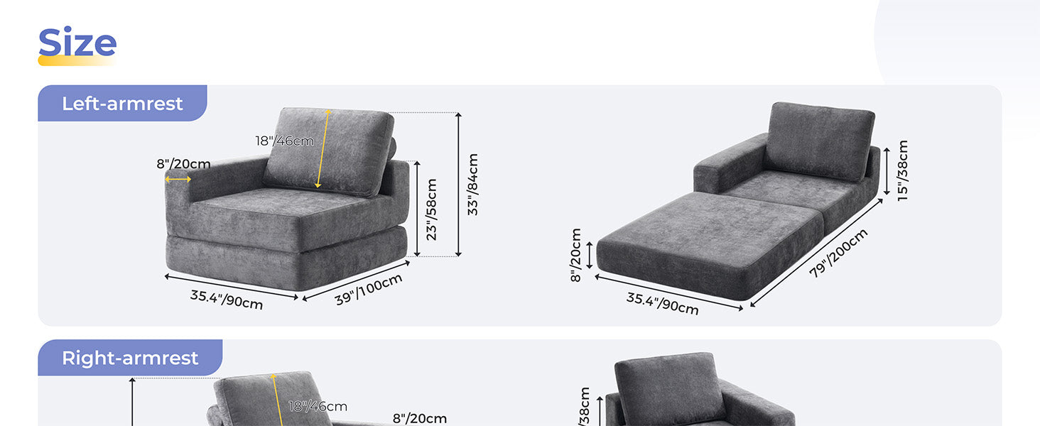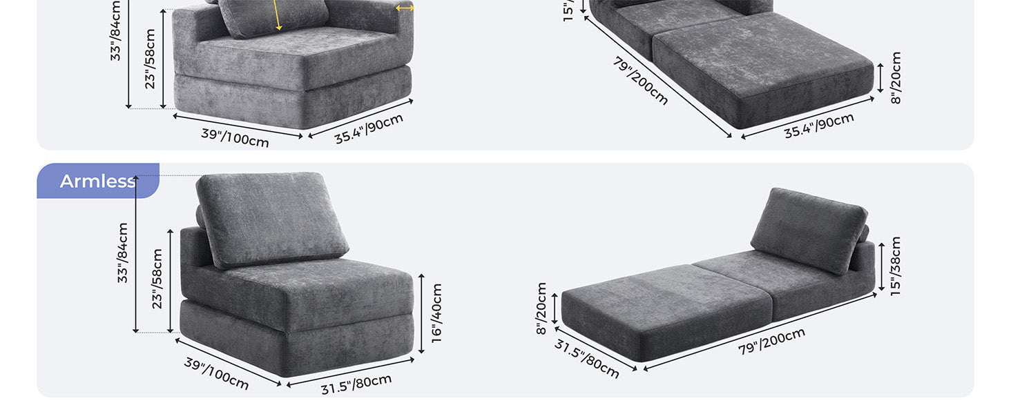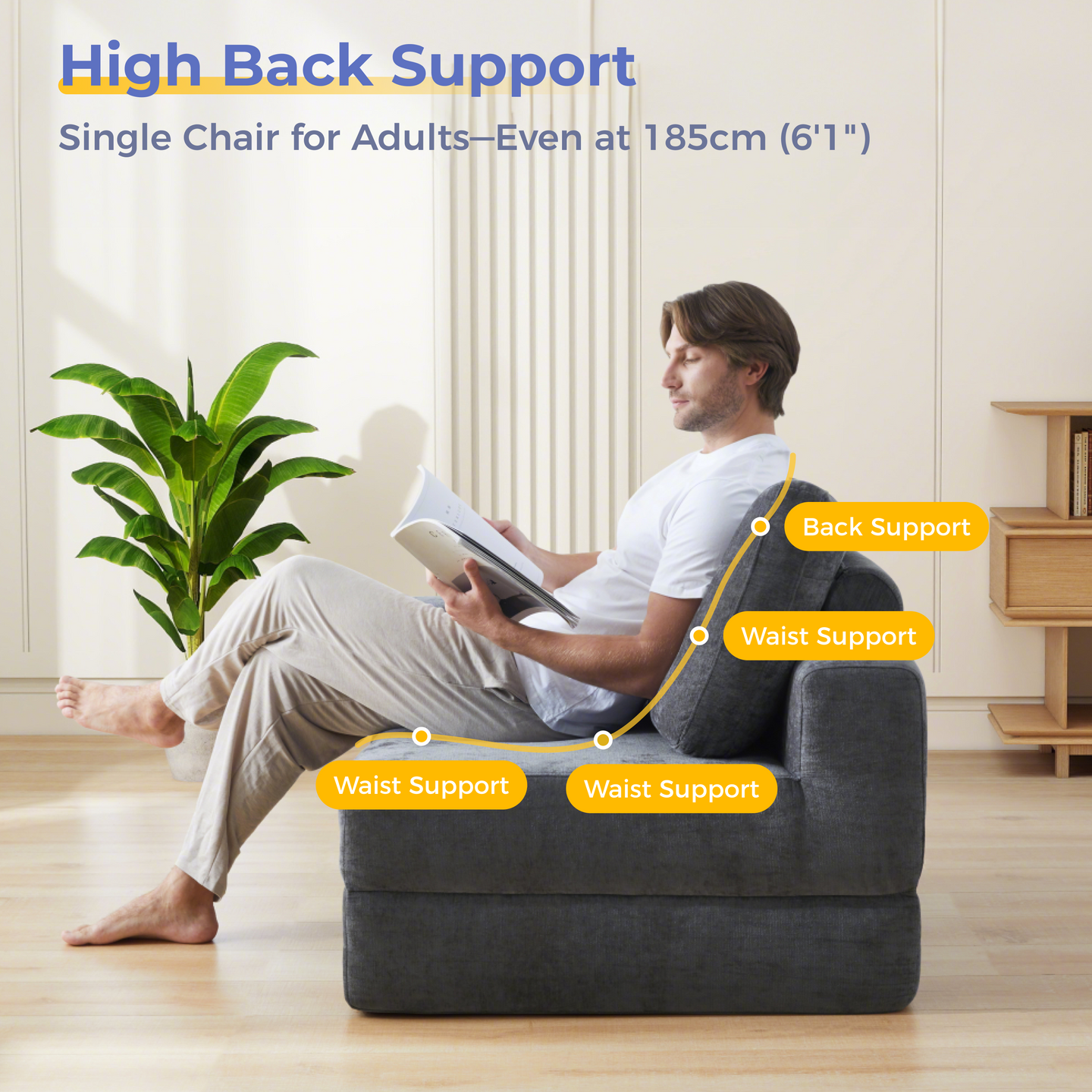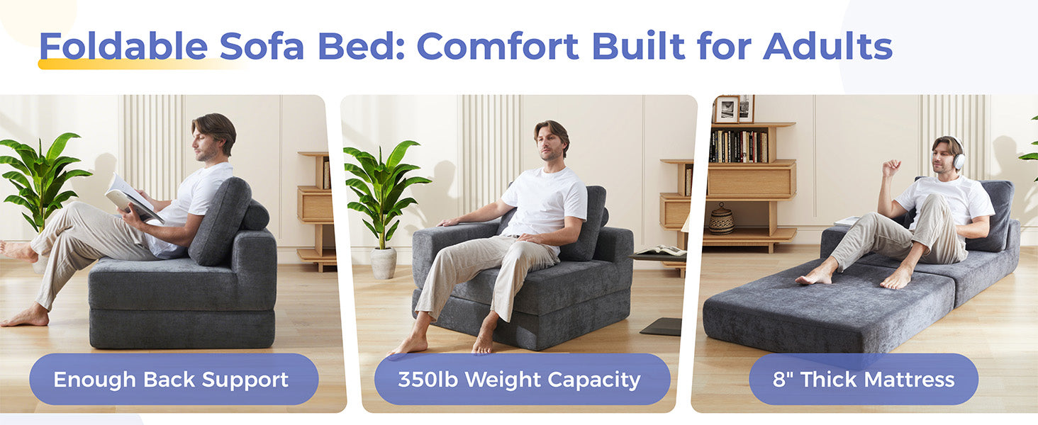High back support:The folding sofa bed increased back support height specifically designed to provide full support for adults while seated.